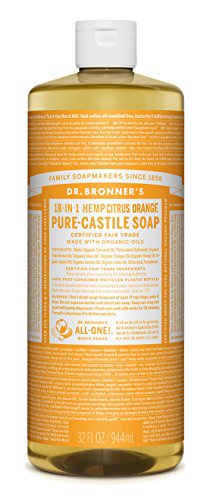 Dr. Bronner'due south 18-In-ane Hemp Citrus Orangish Pure-Castile Soap is made with a blend of organic orange, lemon, and lime oils that makes information technology smell fresh and feels really lite later on using. It brightens your skin and improves its texture. With its 18-in-one uses, this soap tin be used non but to cleanse face, body, and pilus just likewise to make clean dishes, practice your laundry, mop floors, and rinse foods. This castile lather is made with only the purest organic ingredients, of which most are also fair-trade ingredients.